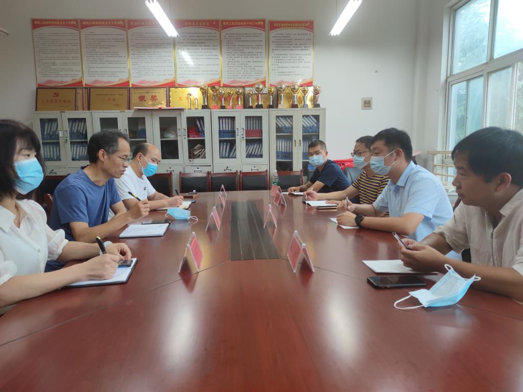 8月20日下午,河南科技职业大学建筑工程公司党总支书记王舜、经理刘志刚等一行4人到公司考察交流,双方就校企合作、竞赛及科研等方面进行了友好细致的交流分享。