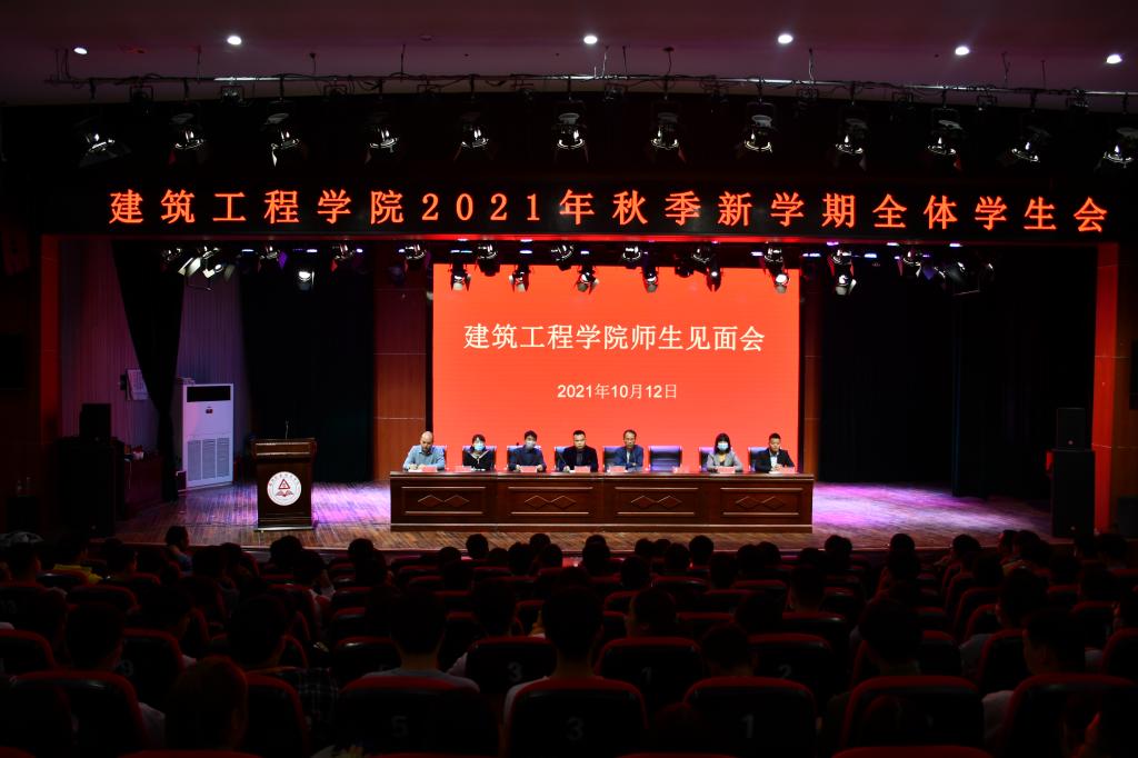 10月12日晚,建筑工程公司在励德厅召开全体在校生员工大会,校企合作企业代表应邀参加会议,会议由经理薛洪主持。