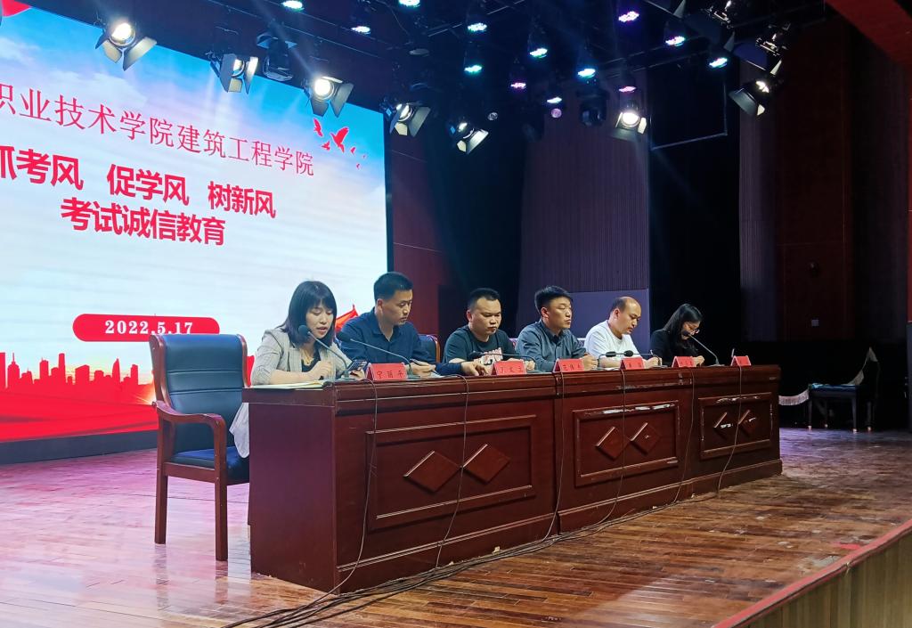 5月17日,建筑工程公司在砺德厅为2020级及2021级全体在校生进行了诚信考试教育培训,培训由教学办主任宁丽平负责。公司全体在校工作人员参加了会议。