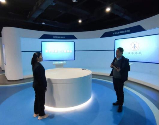 随后带领大家参观了教学实训设备等基本设施,如自动化码头操作模拟软件、岸桥和门机模拟操作室、港航安全警示教育基地、港口运营管理综合实训中心等,并详细讲解了各实训设备在教学中的具体应用情况。