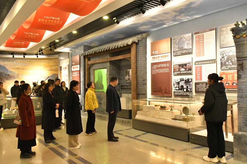 在讲解员的引导下,师生党员依次参观了纪念馆的主题展区。通过珍贵文物、历史照片和场景复原模型,师生党员深入了解吉鸿昌将军从旧军官到共产主义战士的转变历程:1932年加入中国共产党后,他毁家纾难组建察哈尔抗日同盟军,率部收复多伦等失地;被捕后写下“恨不抗日死,留作今日羞”的绝命诗,以39岁生命诠释“国破尚如此,我何惜此头”的赤子情怀。