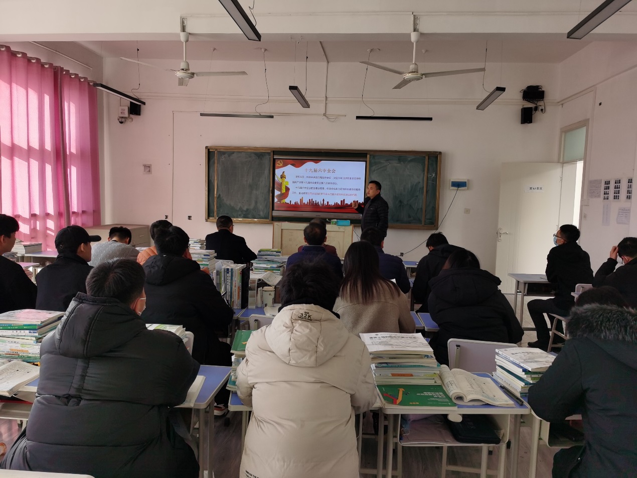 12月1日下午,建筑工程公司到党总支书记范伟杰带领全体师生党员共同学习党的十九届六中全会精神。