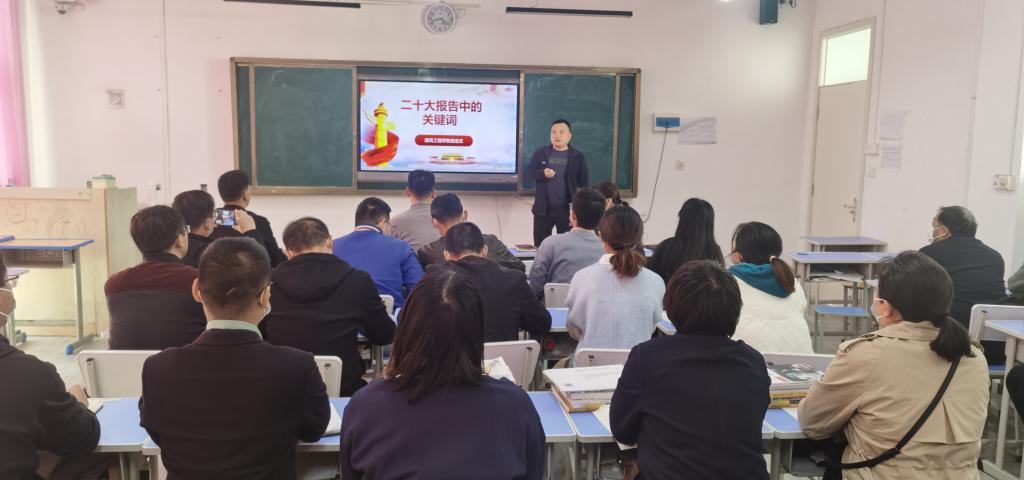 10月19日,建筑工程公司全体党员教师齐聚6214教室,由党总支书记范伟杰领学党的二十大精神。