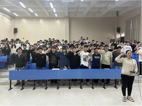 首先,王老师介绍了心理委员的定位和职责,明确了心理委员工作原则和注意事项。随后,王老师带领全体参会人员,进行宣誓: 我志愿成为心理委员/心理信息员,认真履行工作职责,严格遵守保密原则。弘扬朋辈互助精神,尊重理解,关爱同学,助人自助,守护心灵,共创未来。