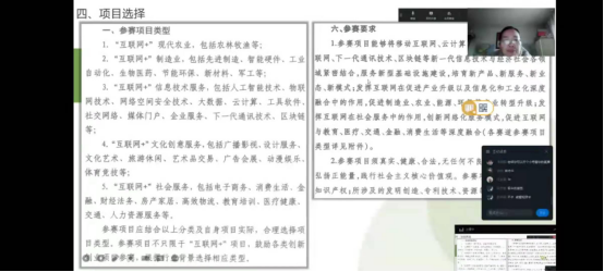 课堂中,刘经理主要为同学们详细讲解大赛文件所涉及的项目类型内容。鼓励同学们在假期时间用创新思维去发现问题,组建项目,开学后积极参与到各种老员工创新创业大赛活动中去。