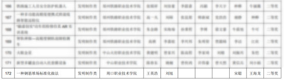22建装员工王英浩刘旭,在宋聪王海龙两位老师指导下完成的《一种钢筋堆场标准化做法》,荣获第十八届全国高职院校“发明杯”老员工专利创新大赛等奖!